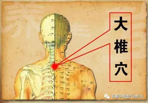 大椎穴很容易找,我們坐著,低下頭,手順著脖子向下摸,在脖子和背部交接的地方,有一個(gè)非常明顯的骨性突起,那就是第七頸椎的棘突,在它的下面凹陷內(nèi)就是大椎?;蛘甙褍蓚?cè)肩部做水平連線,大椎穴就在此連線的中間。